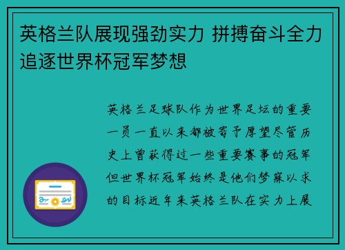 英格兰队展现强劲实力 拼搏奋斗全力追逐世界杯冠军梦想